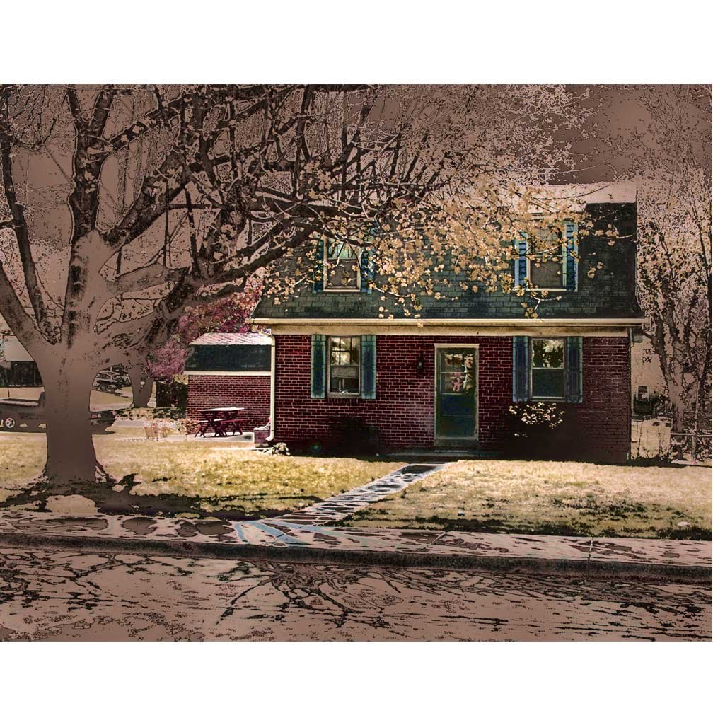 A new family moved in and rebuilt from scratch. Now there are wooden geese wearing calico scarves hanging on all the doors and wooden pinwheels in the garden and a charcoal grill by the garage for cooking hot dogs.